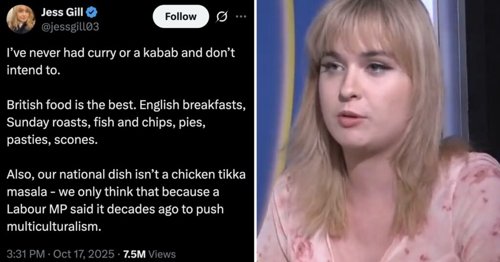 Especially, it seems, what she sees as her country’s cuisine, as she embarked on a bit of a Twitter rant about curries, kebabs and ‘foreign slop’ in general.