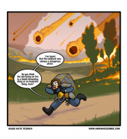 Share Facebook Twitter LinkedIn Pinterest Email Copy Link New comic!Today’s News: I’m pretty sure the head-sized spiders that drink the juice out of your car batteries also predate the Death Stranding. Awkward Weather Zombie