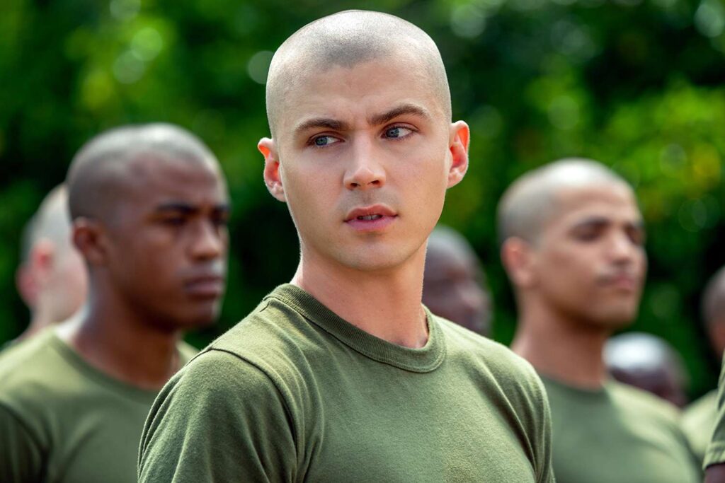 The nerve-racking comedy tells the true story of Greg Cope White, whose passage through the brutal Marine Corps basic training regimen detailed in the 2015 memoir The Pink Marine serves as the basis for the series. Heizer plays a version of Cope, a closeted Louisiana teen who follows his only friend, Ray McAffey (Liam Oh), to a South Carolina Marine base for an antagonistic, high-octane, weeks-long boot camp.