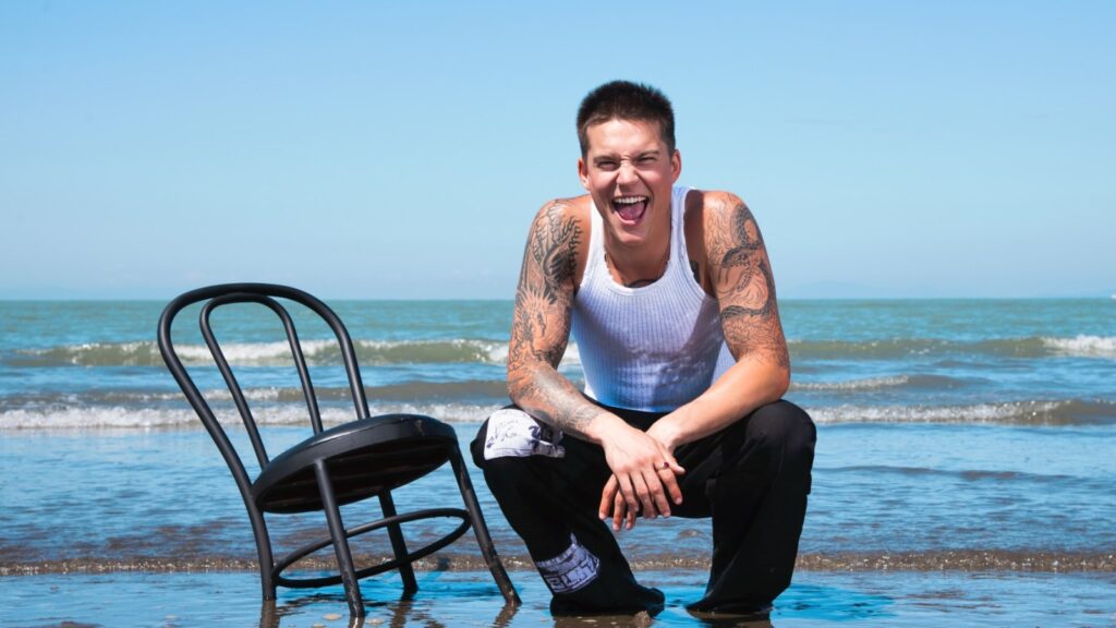 By his estimation, Whitcomb started drinking around age 13 or 14. Meth followed not long after that. He left home when he was 17 and took a job working on a pipeline in Western Canada. He spent his off-hours either singing karaoke or posting videos of cover songs on social media. In 2022, an American Idol representative saw one of his videos and invited Whitcomb to audition. He finished in the top 20 for the season and decided to take music seriously in the wake. He started writing songs and quickly found an audience on social media. At the same time, he owned up to his own addiction and swore off substances by the time he was 20. His father and best friend were heavily influential in that decision.