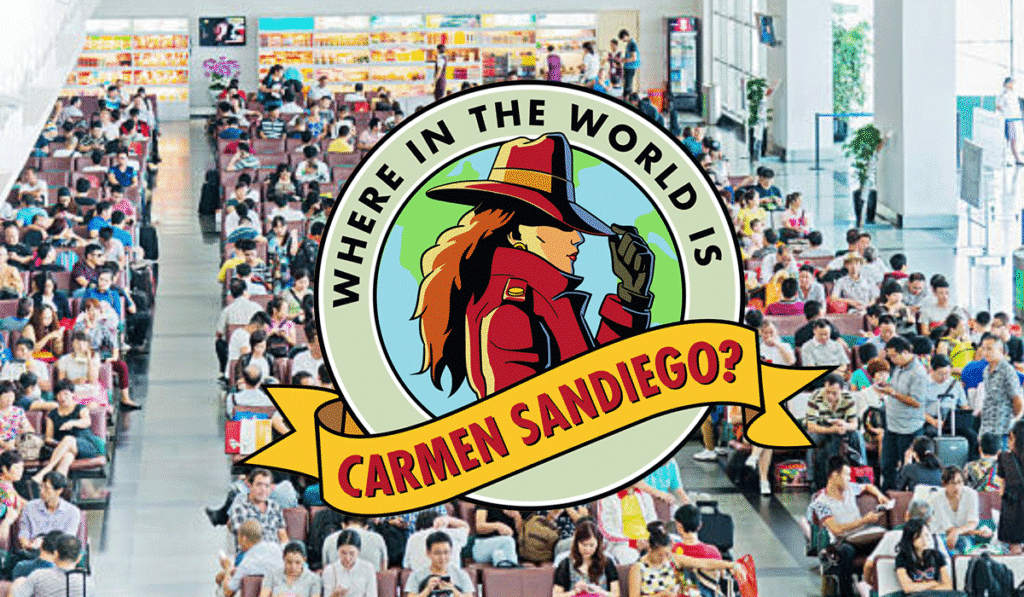 4:00 p.m. — Carmen gets an email from her producer. Rockapella is singing a version of the theme song where they change the lyrics from “Where in the world is Carmen Sandiego?” to “Carmen Sandiego is at El Paso International Airport.”