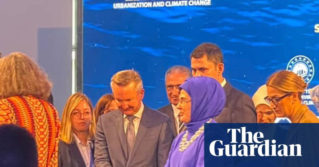 Climate change and energy minister Chris Bowen has appeared with Turkey’s first lady, Emine Erdoğan, at a major environment event in New York as negotiations over hosting rights for the COP31 summit come down to the wire.