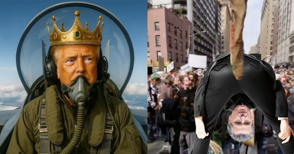 When Trump responded to the recent nationwide “No Kings” protests by reposting an AI-generated video of himself flying a fighter jet and dumping what appears to be sewage onto the protestors below, it was a new low. That’s when California Governor Gavin Newsom stepped in. No stranger to clapping back at Trump using his own crude language, Gavin posted a new version of the video, this time with himself inserted in the crowd catching every last drop of the shit with his own ass and then waddling over to a nearby porta-potty and properly disposing of the waste. Gavin’s caption for the post was also characteristically on-point: “In California, we deposit our solid waste into a TOILET, Mr. Trump. Here, fixed it for you.”