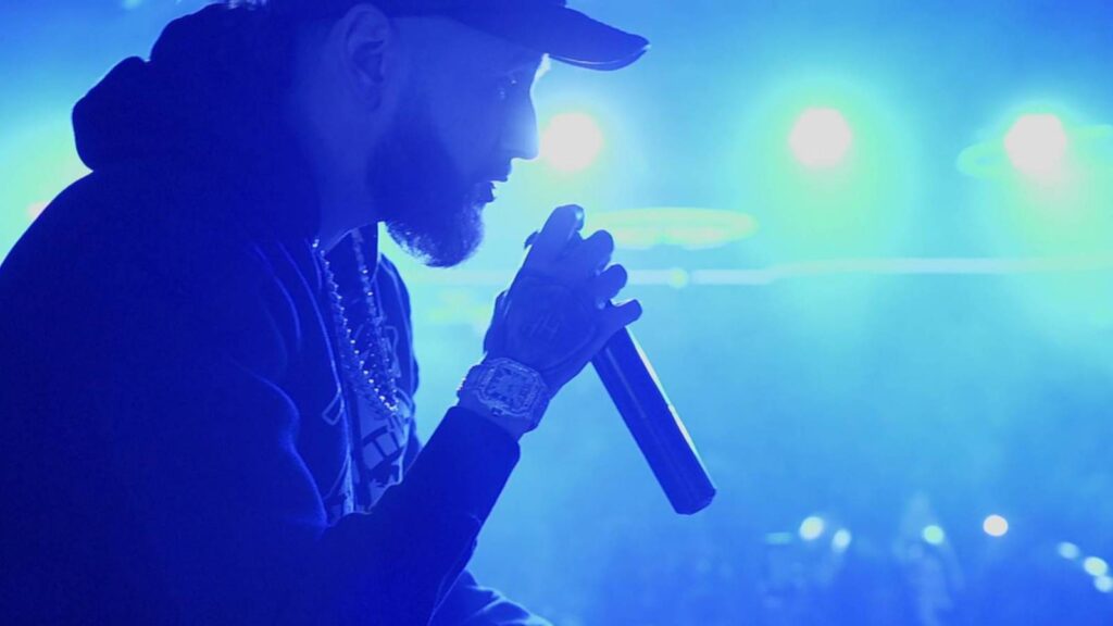 As his voice plays, quick cuts show him working the fields, recording music in a closet with a friend, spotting a foreclosure sign on his home, picking up wads of cash, and hauling stacks of marijuana. “My mom used to tell my dad, ‘What you do in the dark will always come to light,’” he says in one part. “I was about to find out what that means.”