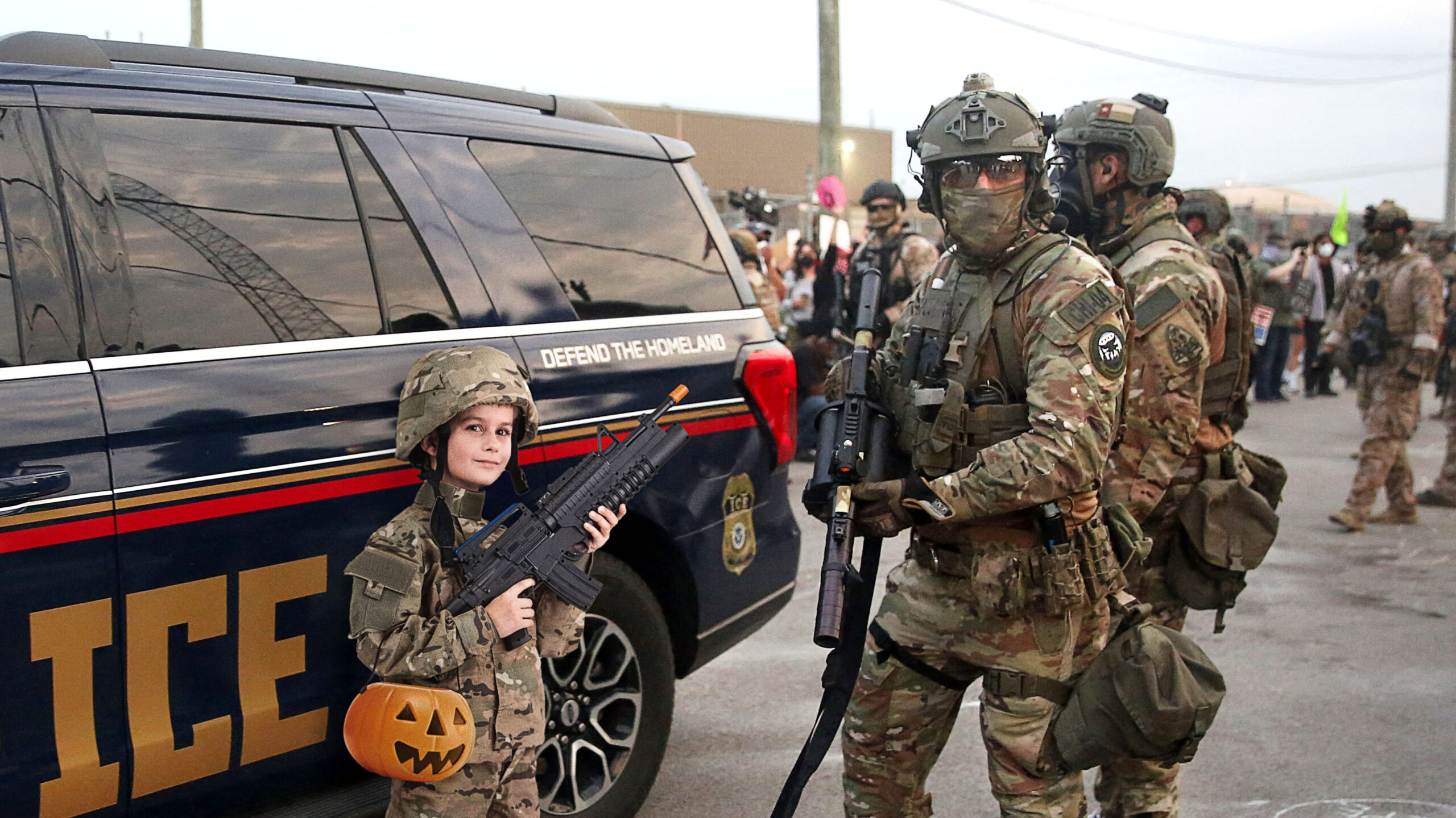 Share Facebook Twitter LinkedIn Pinterest Email Copy Link ICE Agent, 7-Year-Old Both Wearing Same ‘Military Commando’ Halloween Costume – The Onion Published: October 31, 2025 7YearOld Agent Commando costume Halloween Ice military Wearing