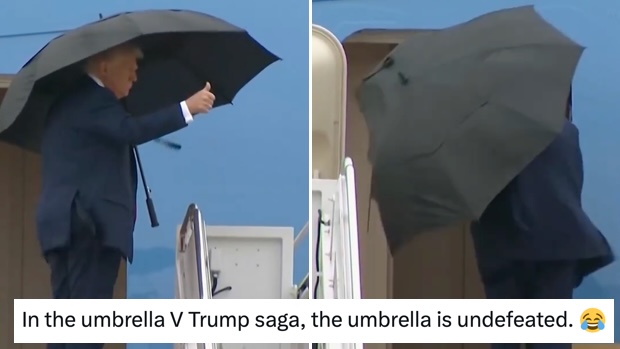 We say this after this clip of him boarding Air Force One carrying a brolly went viral because, well, best have a watch for yourself.