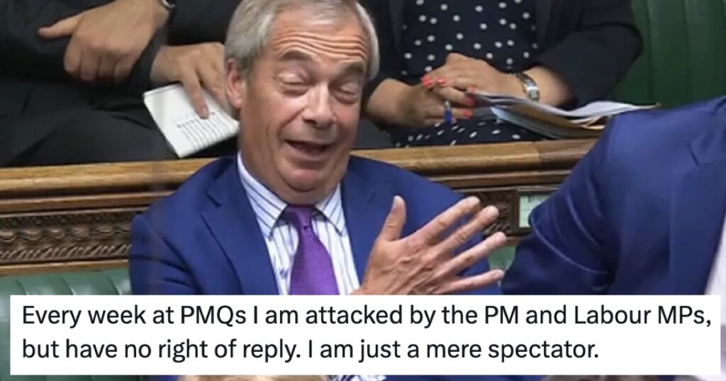 The Reform UK party leader has flounced out of PMQs – apparently for good – because other MPs keep on picking on him and he never gets to ask a question.