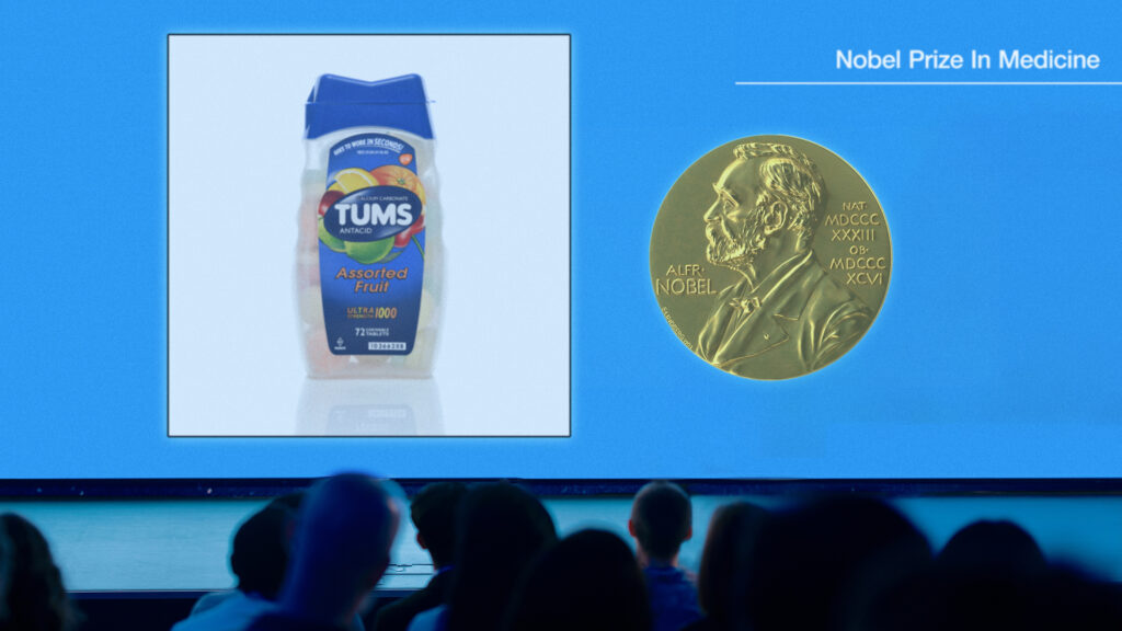 STOCKHOLM—In an effort to honor the groundbreaking work of bringing fast relief to millions suffering post-meal heartburn and indigestion, the prestigious Nobel Prize in Medicine was awarded Monday to the over-the-counter chewable antacid Tums. “What Tums has achieved was long thought impossible: a fruit-flavored tablet capable of quickly neutralizing acid reflux even after a person has eaten dozens of jalapeño poppers,” said Olle Kämpe, chair of the Nobel Prize Committee for Physiology or Medicine, adding that the panel was particularly impressed by the scientific rigor behind Tums’ catchy jingle and its pioneering development of colorful little miracle tablets. “How often have we been unduly punished by our own bodies for having one too many chili dogs? How many generations have accepted that bloating is the inevitable price of enjoying a greasy bacon double cheeseburger? Tums allows our children to grow up in a world where they can house two dozen Buffalo wings without the consequence of an upset stomach.” At press time, Tums had also been awarded the James Beard Award for Excellence in Tropical Flavoring.