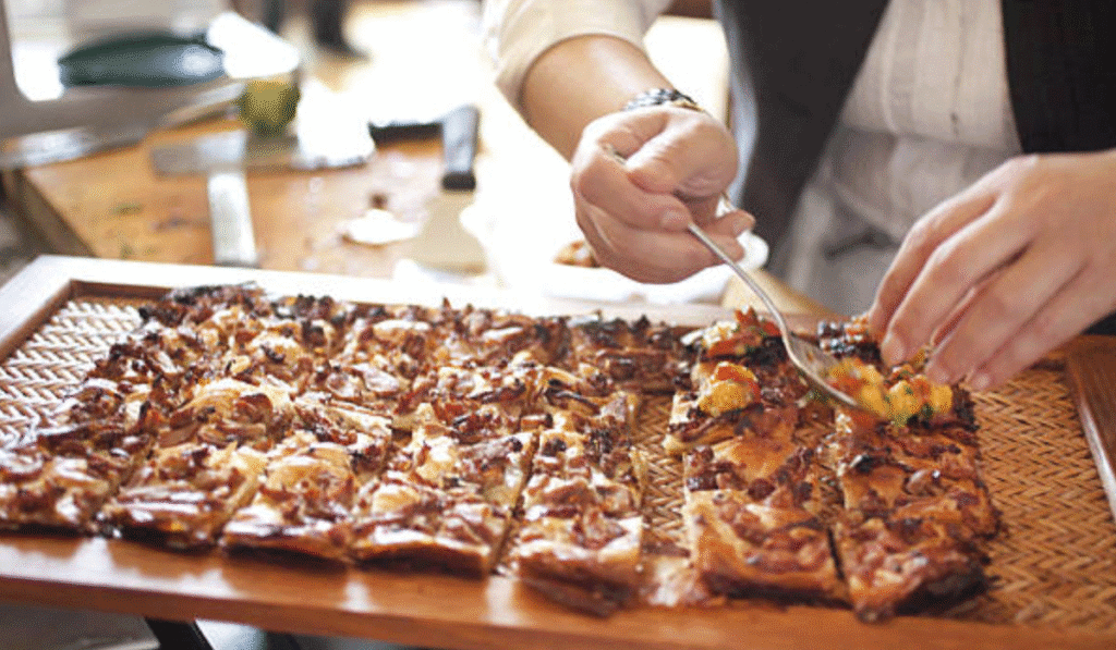 Our specialty? Chef Claire’s signature dish is Chicken Boom Boom. Braised organic chicken on a bed of fried risotto, layered with black bean ragout, arsenic-laced Cheerios, roasted summer squash, Cool Ranch Doritos, and a meat cleaver at high velocity. Gluten-free available.