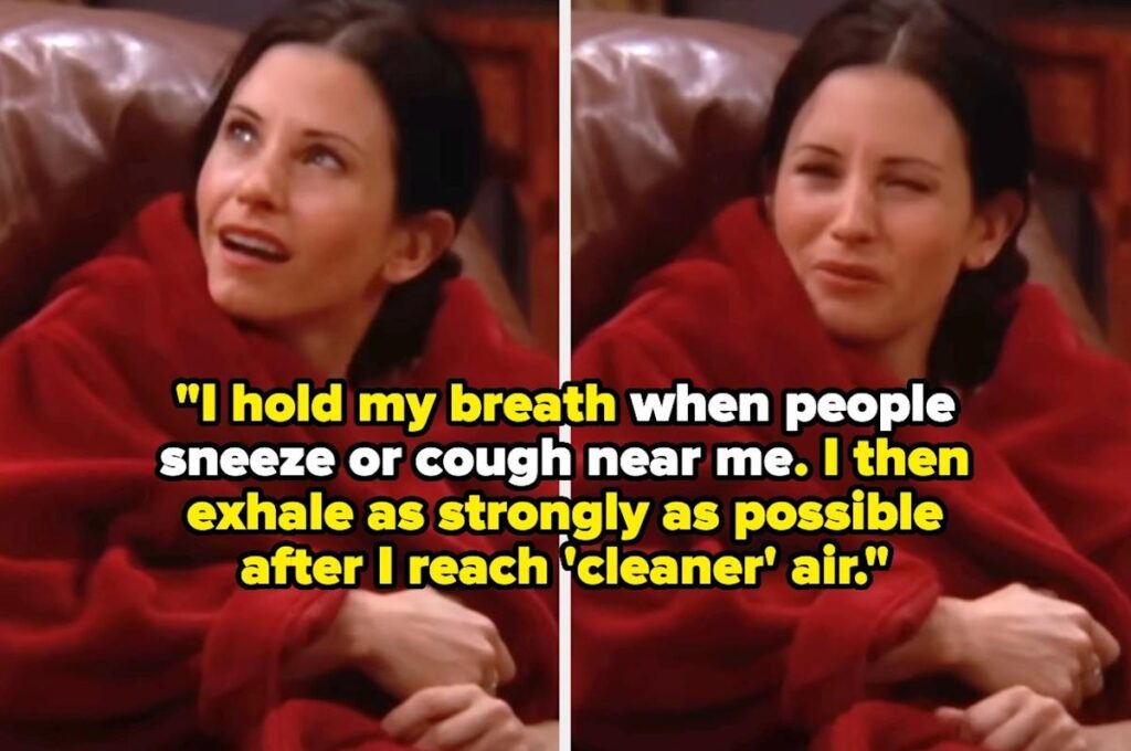 3. “I hold my breath when people sneeze or cough near me. I then exhale as strongly as possible after I reach ‘cleaner’ air. No idea if there’s any science behind this.”