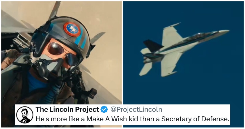 But no …the former Fox News presenter – now styling himself as the Secretary of War – has been cosplaying as a fighter pilot.