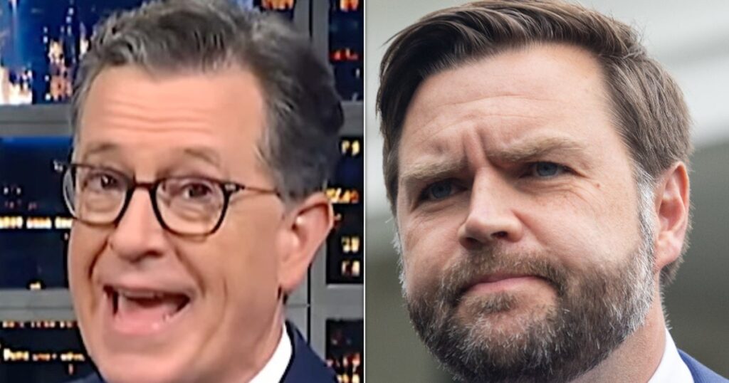 “Late Show” host Stephen Colbert on Thursday fired back at Vice President JD Vance with a meme that takes the sofa jokes to a whole new level.