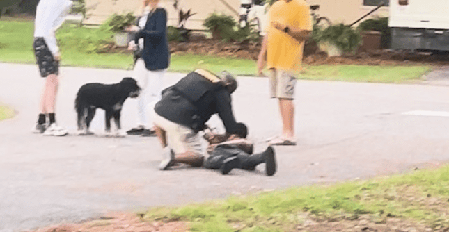 In the video, it shows one deputy walking to the boys and family members gathered off to the side. Another deputy walks up to Squires and the detained teen.