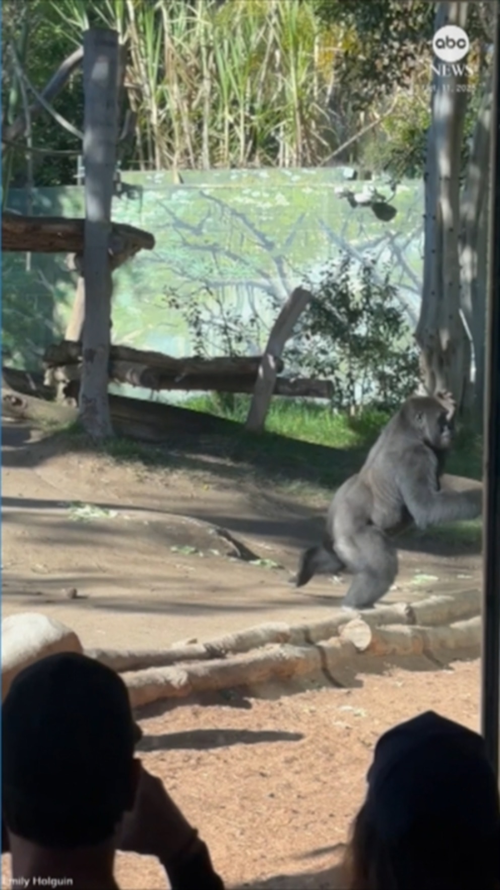Eyewitness video captured the heart-stopping moment a gorilla rushed the glass at a viewing enclosure in the San Diego Zoo.