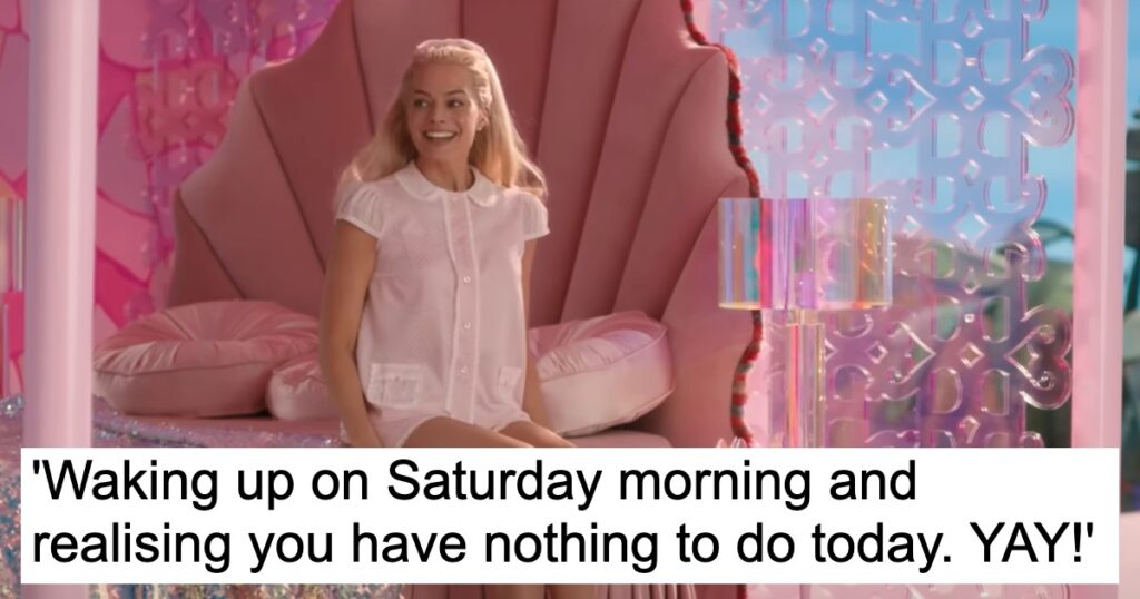 ‘Waking up on Saturday morning and realising you have nothing to do today. YAY!’